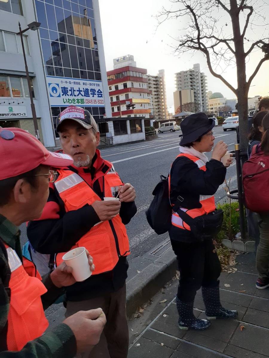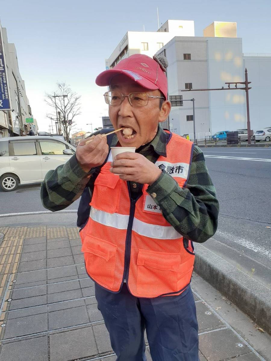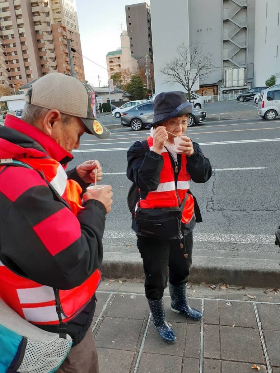 本日のボランティア活動は終了後に、宿舎へ戻ると、団体「いのちの水作戦」の方が東京から倉敷のボランティアさんのために、お汁粉を振る舞いに駆けつけてくださいました。