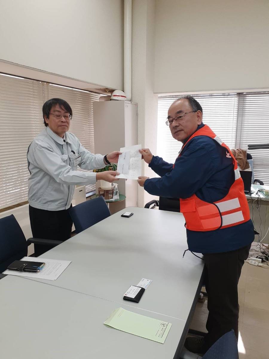 真備町の箭田地区まちづくり推進協議会から義援金をお預かりし、ボランティアバスの同行職員がいわき市へお渡ししました。
