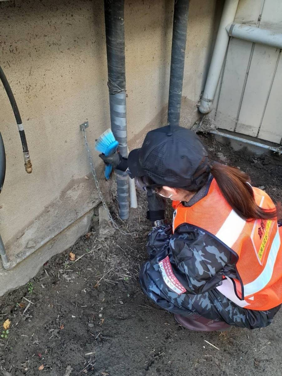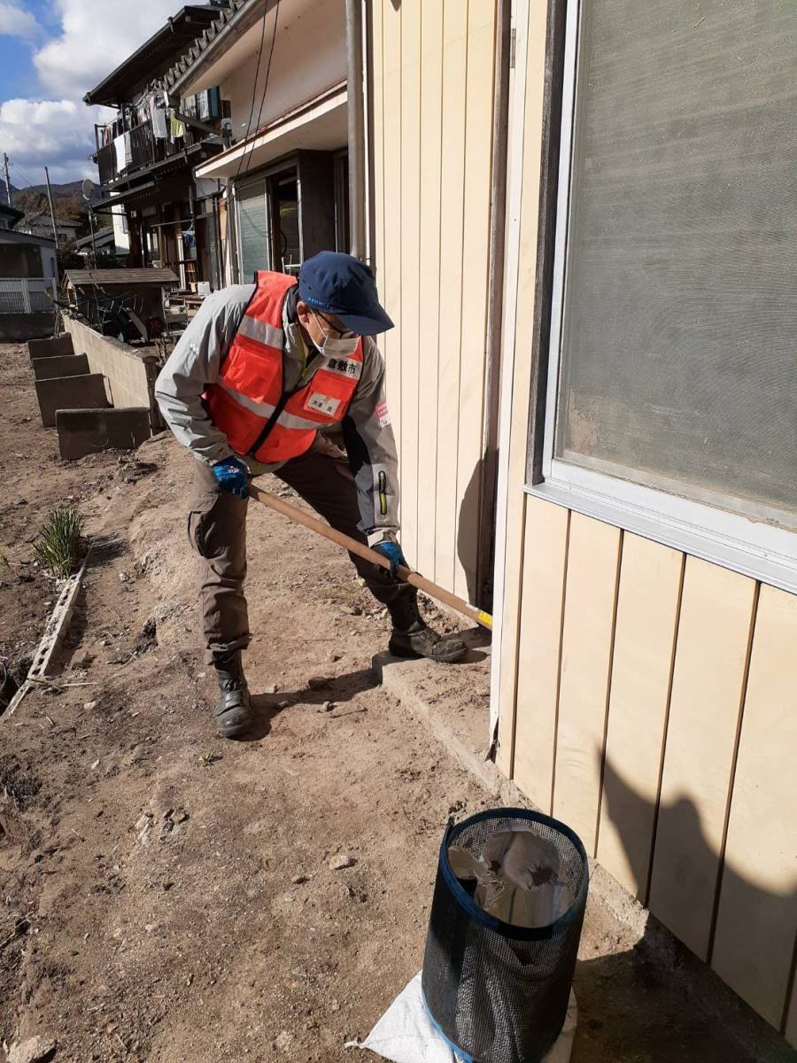 2件の被災されたお宅で1件は床下の泥出し、もう1件は裏庭の泥出し作業をしています。