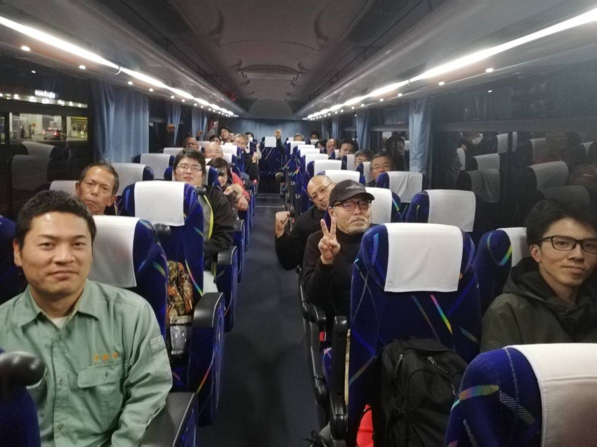 11月21日(木)午後8時すぎ、本日早朝、福島県いわき市へ被災者支援のため出発した、ボランティアバス(第1回)が、無事に福島県いわき市に到着しました。 ボランティアの皆さん、バスでの長旅お疲れ様でした。ゆっくりお風呂に入って休んでください。 明日と明後日は、無理せず体調に気を付けて、被災者の方に寄り添い、笑顔になっていただけるよう、お願いします。 倉敷からも応援しています! (バス車内での様子です。楽しい雰囲気が伝わります。)