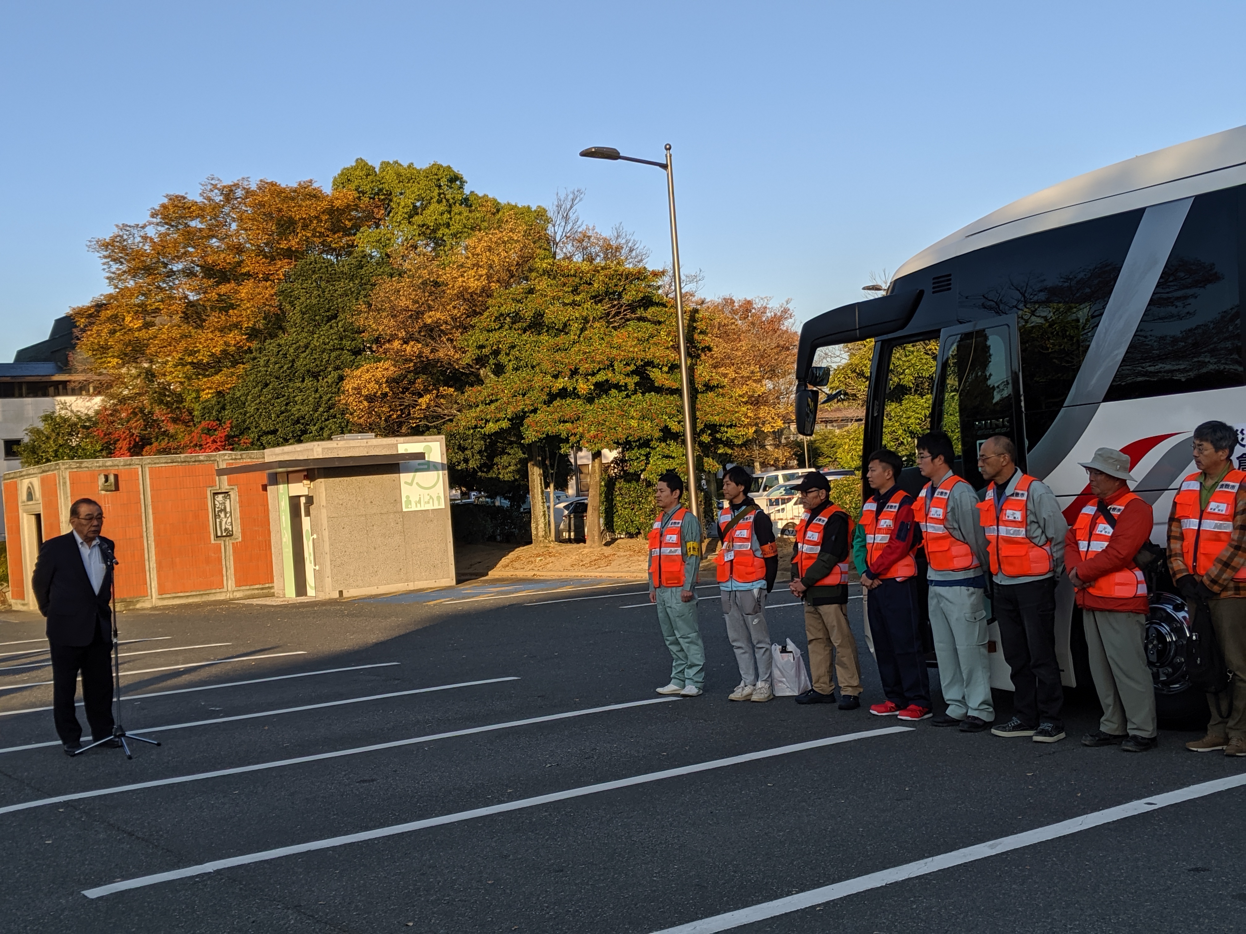 出発式で参加者の那須さんは「ワンチームで被災者支援活動に行ってきます。頑張ってきます。」とボランティアを代表して挨拶されました