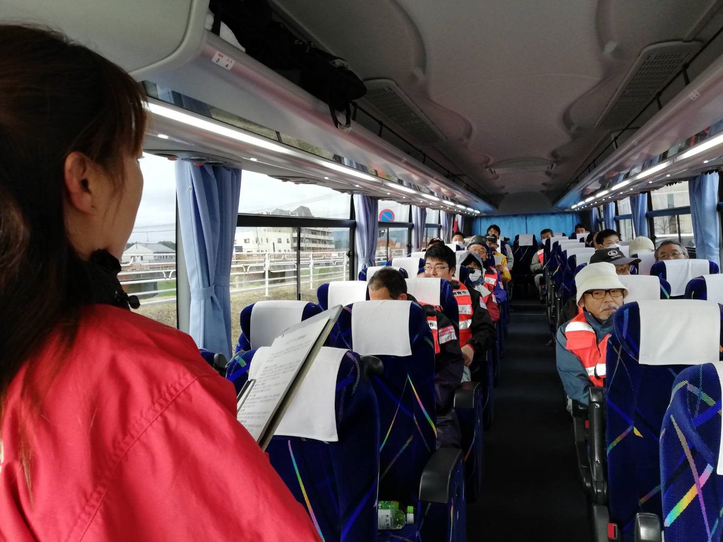 バス車内でオリエンテーションを行い、グループになり活動へ出発しました。