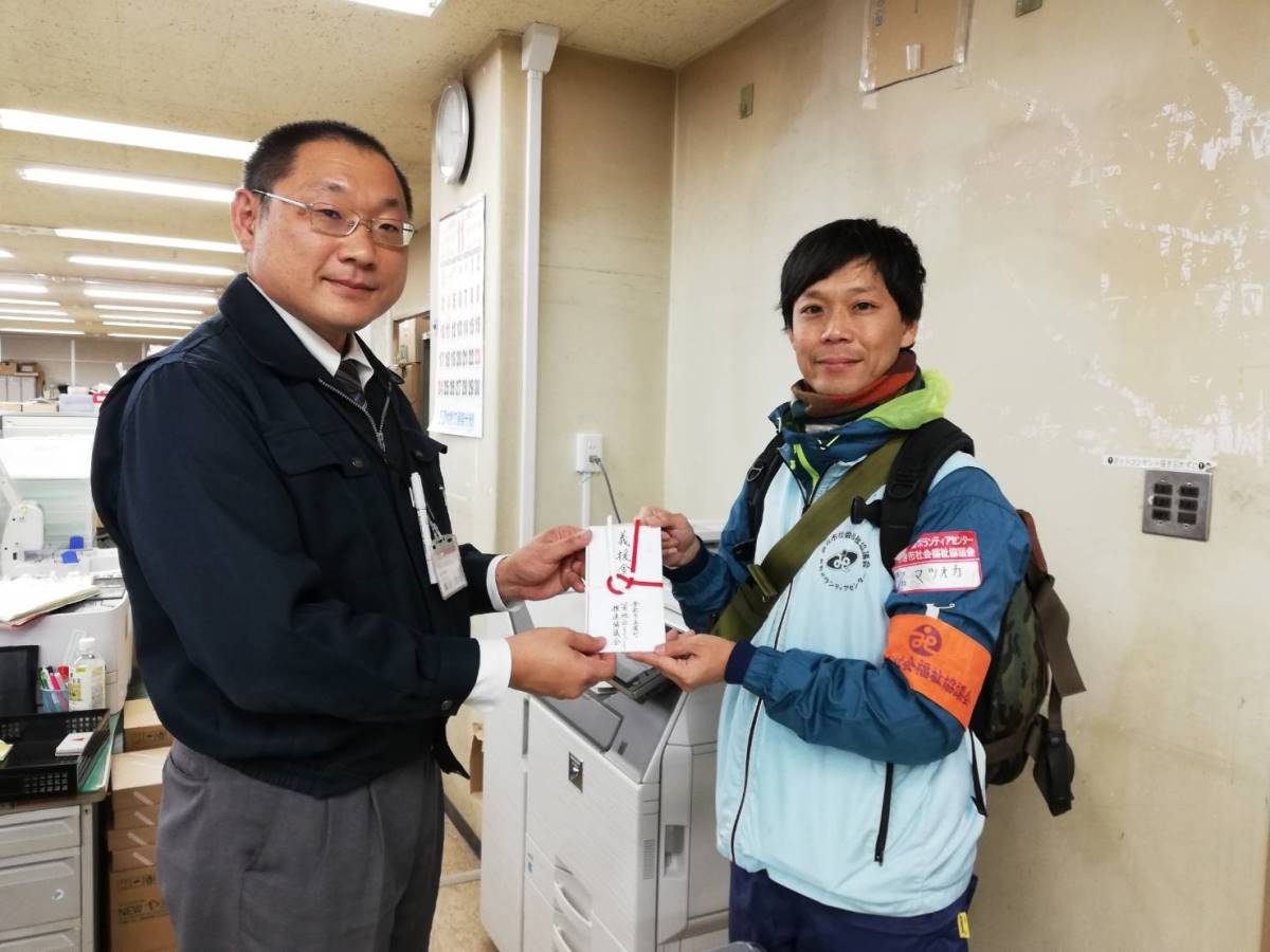 倉敷市真備町薗地区まちづくり推進協議会よりお預かりした「義援金」もお渡しさせていただきました。