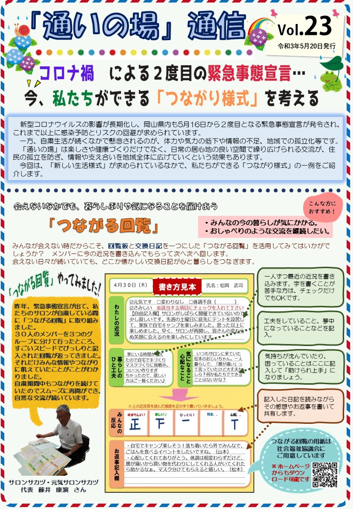 生活支援コーディネーターが中心となり、「支えあいの地域づくり」の大きな効果や役割を果たす、『通いの場』の把握・情報発信を目的として、通信を発行しています。